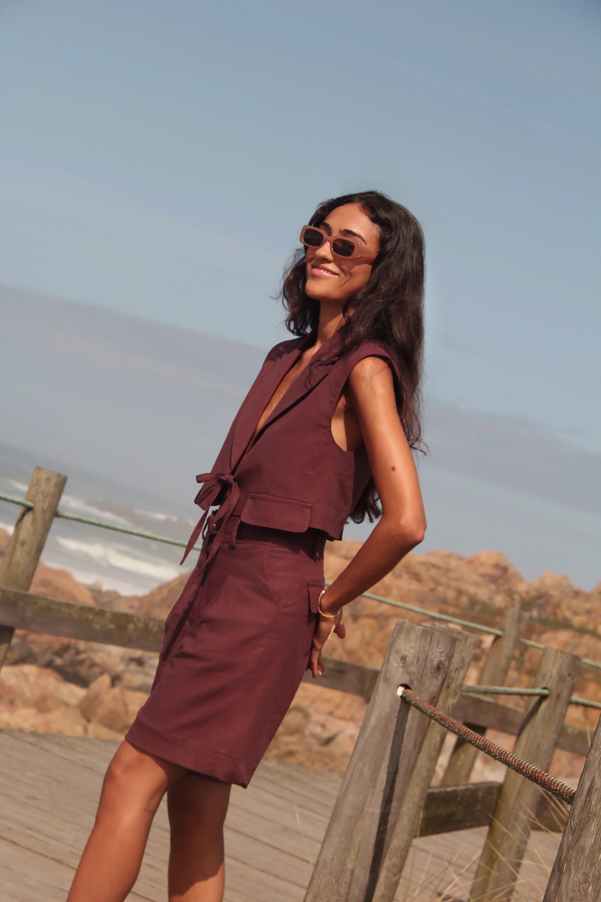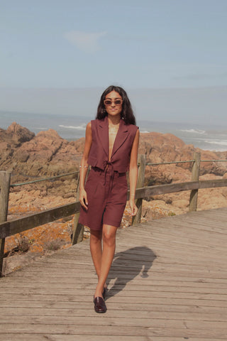 Bermuda sastrero confeccionado en 65% lino y 35% algodón. Fit relajado y cómodo con pinzas delanteras.
