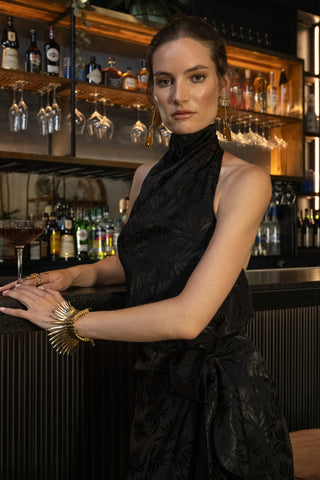 Diseñada para verte elegante sin dejar de sentirte cómoda. Cuello alto que estiliza la figura. Tela jacquard con diseño de hojas, con textura elegante. Liviana y cómoda para usar por horas. Úsala con su falda para un look más formal o combínala con jeans para una salida de noche. Una de esas blusas que siempre te hacen ver arreglada sin complicarte.