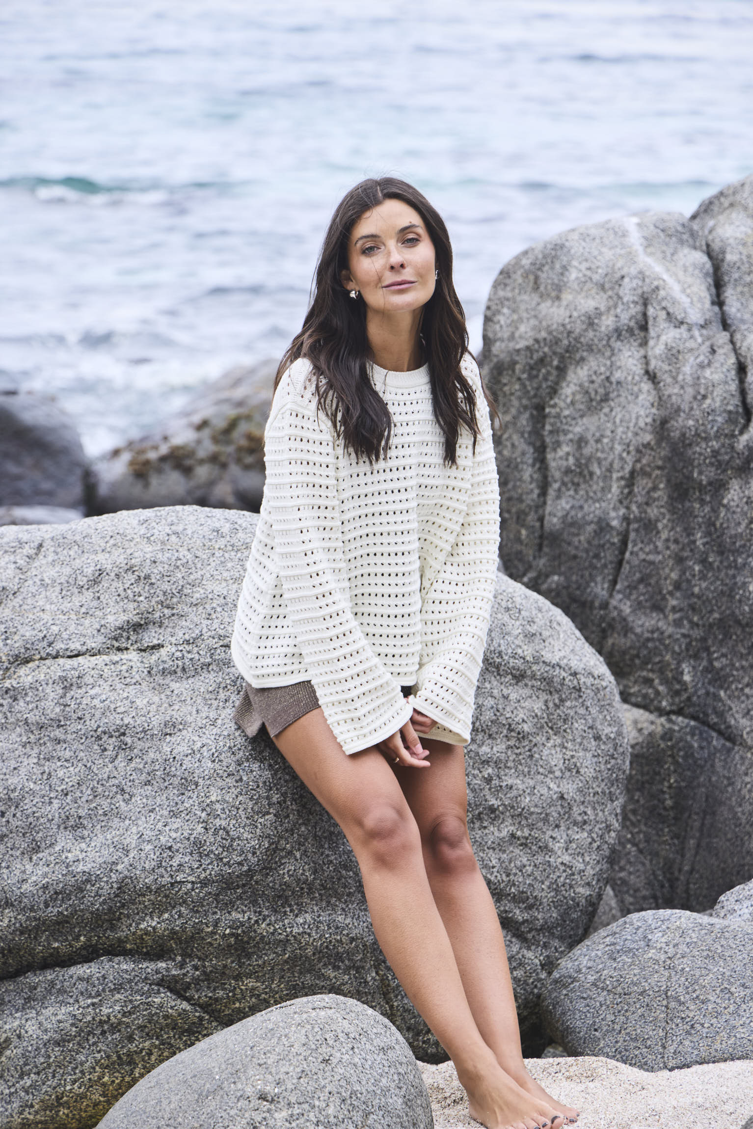 Chaleco de tejido calado confeccionado en algodón pima peruano, reconocido por su suavidad, resistencia y tacto premium. De calde holgado y mangas anchas, ofrece frescura y movimiento, ideal para elevar looks de verano con una capa ligera y versátil.
