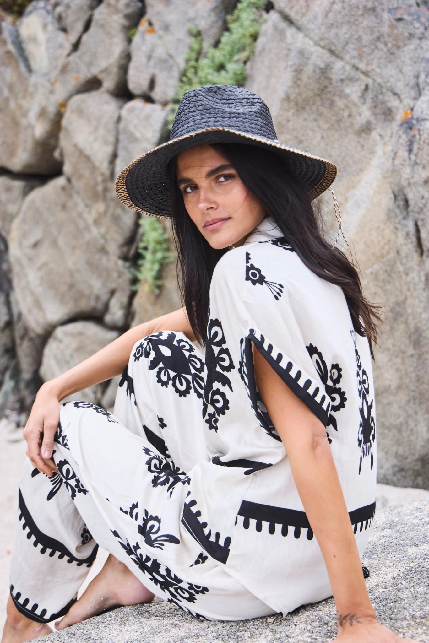 Conjunto de dos piezas confeccionado en 100% viscosa suave y liviana. Incluye blusa y pantalón de calce suelto, ideal para días cálidos gracias a su fresca caida y fluida.