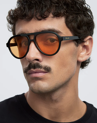 Kena reinterpreta la clásica silueta de las gafas de sol aviador con un diseño más robusto y contemporáneo. Sus lentes, de forma inspirada en un triángulo invertido, junto con el doble puente, aportan carácter y personalidad al modelo.