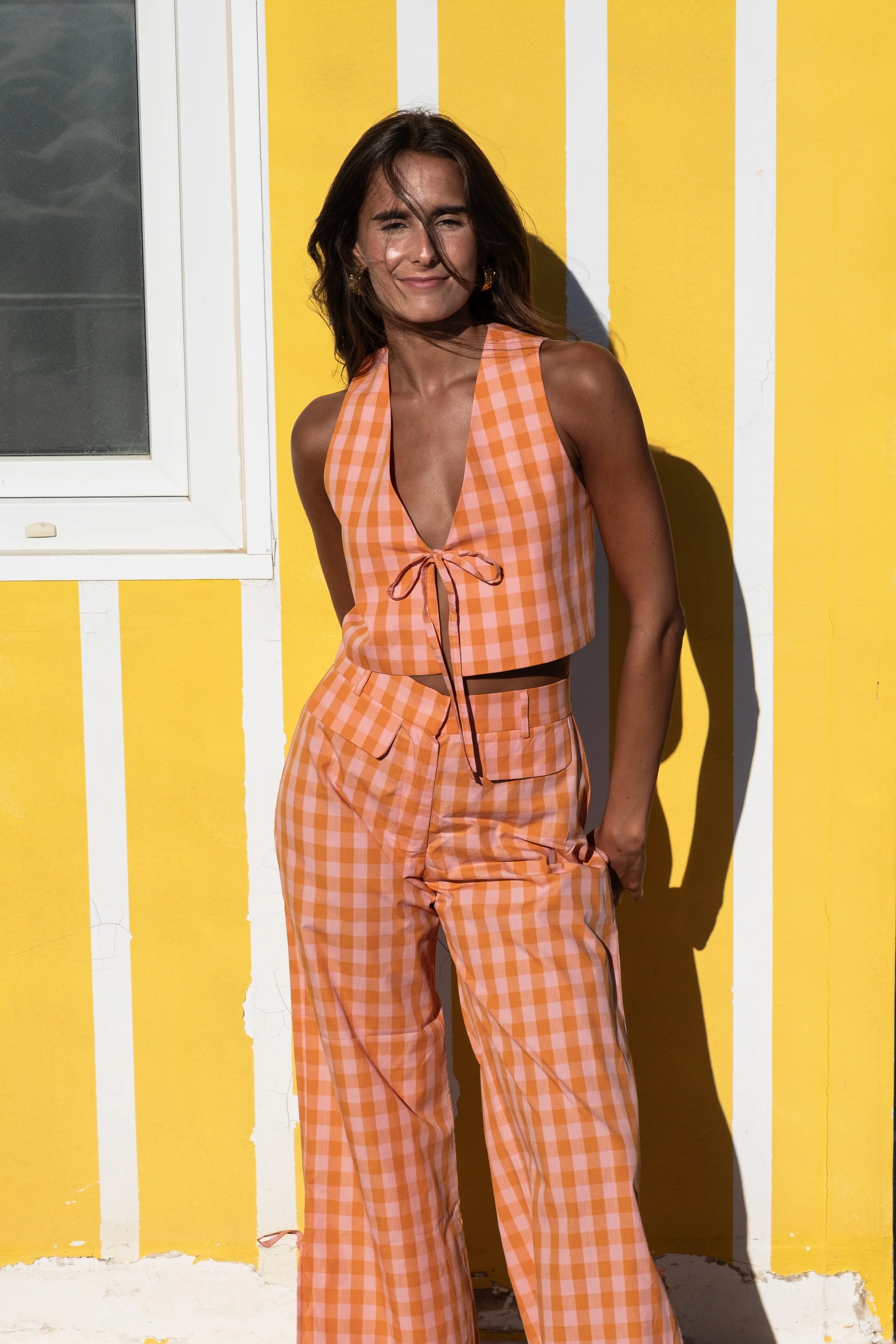 Pantalón confeccionado en algodón 100% estampado. Corte recto holgado, con tapetas delantera y trasera y pabilos en piernas