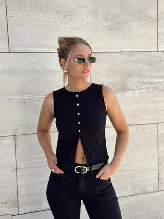 Nuestro Top Cali es ideal para outfits de día y de noche. Es muy versátil, cómodo y combinable con todo. Los botones de concha perla le dan un toque muy delicado y la apertura hace que se transforme en un top original, sexy y elegante al mismo tiempo.