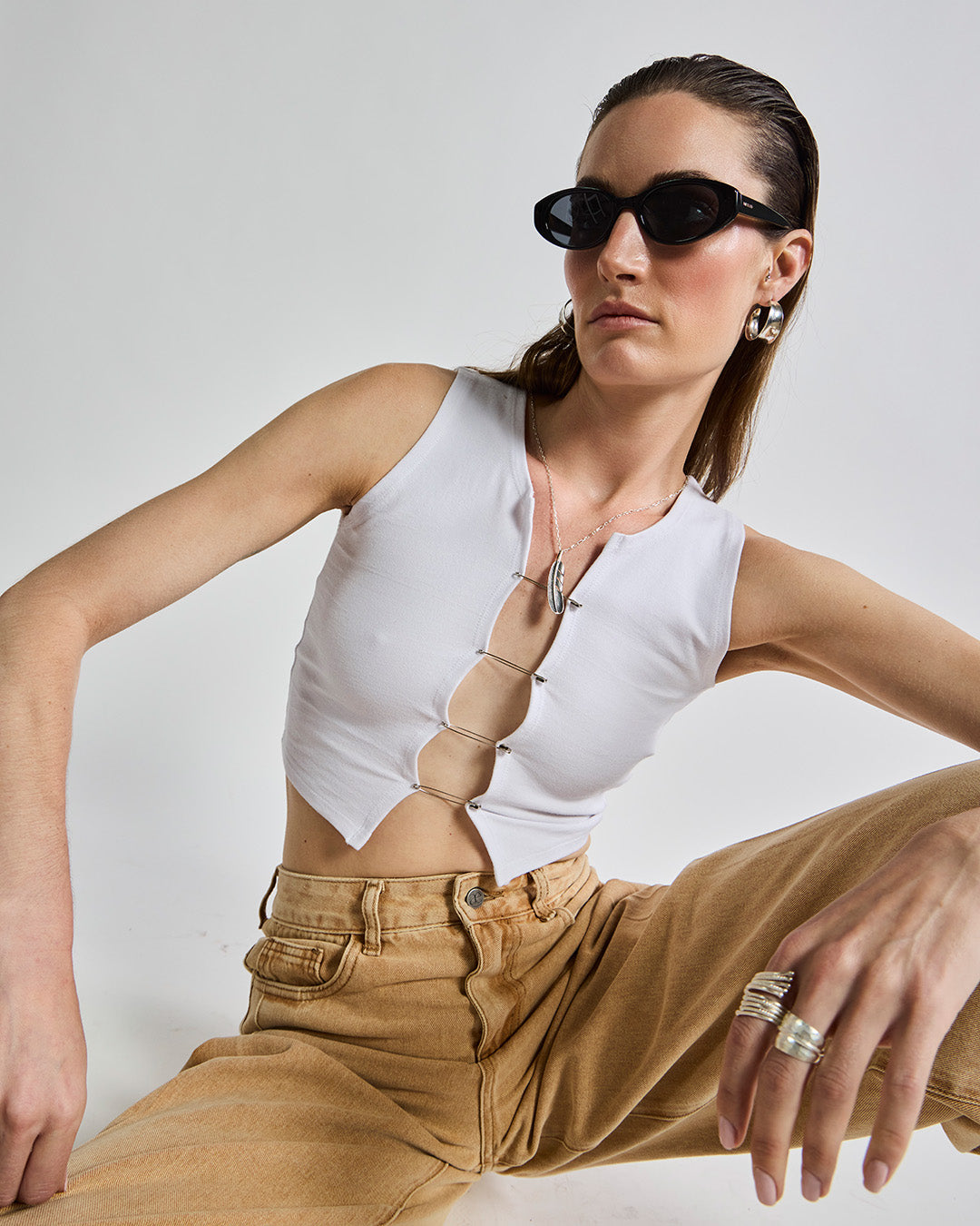 Top Gandia blanco con ganchos plateados