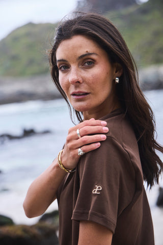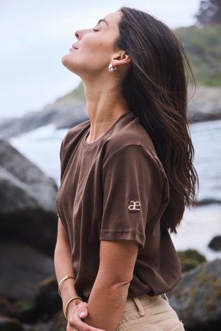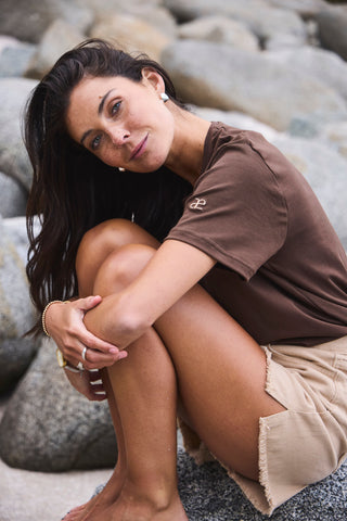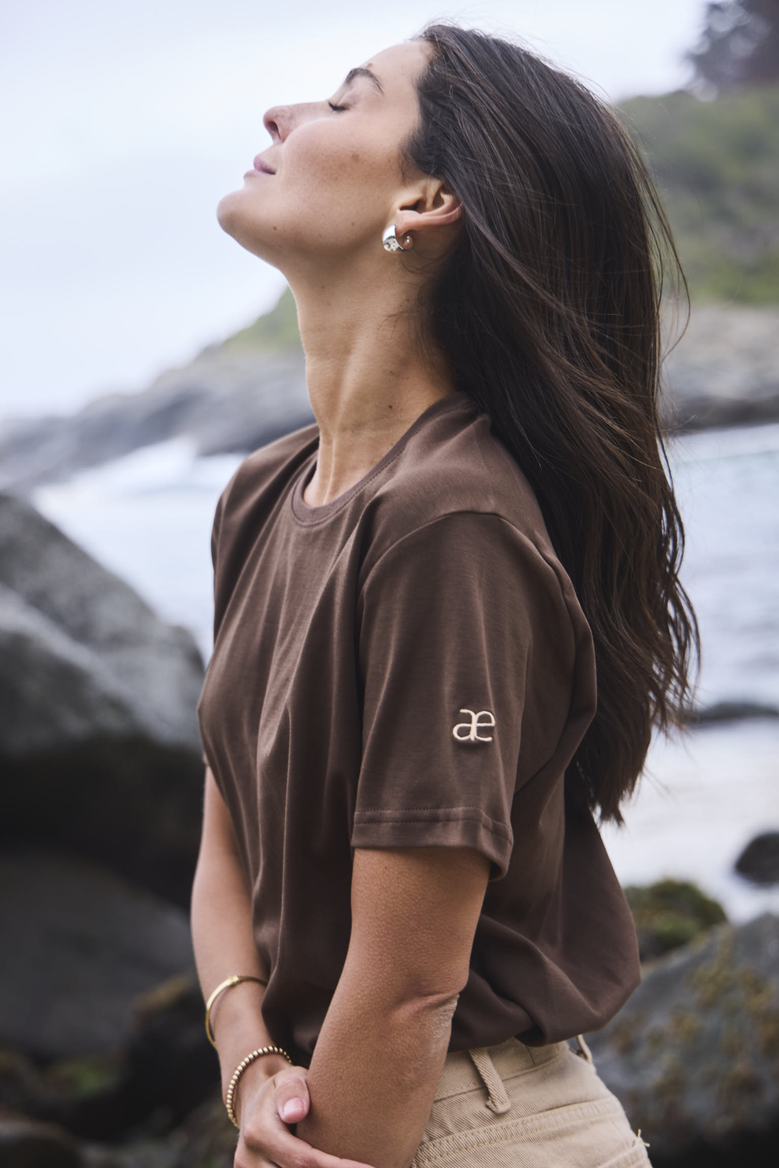 Polera de cuello redondo y manga corta confeccionada en 100% algodón peruano, reconocida por su suavidad y durabilidad.