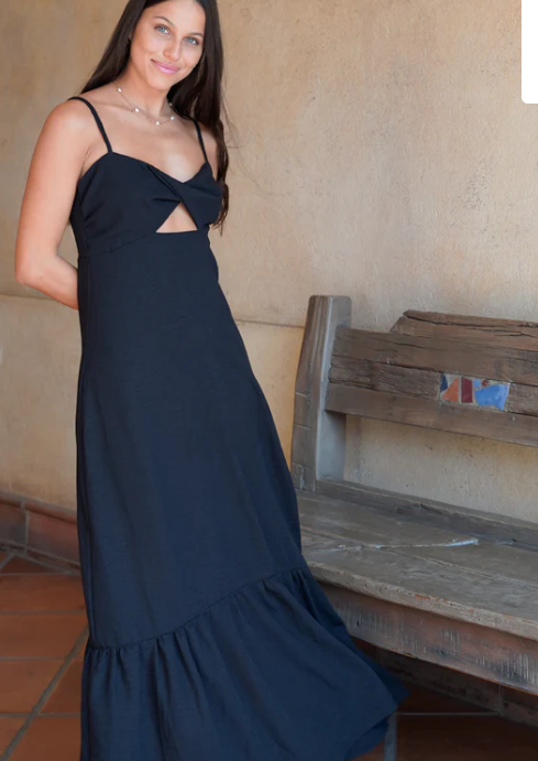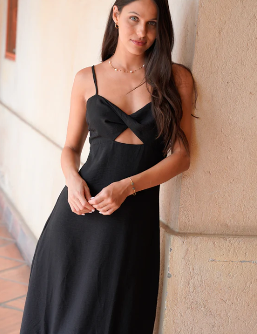 El Vestido Arrecife se ajusta muy bien a todos los cuerpos. Tiene un escote drapeado con un pequeño corte al centro y una caída fluida que lo hace muy cómodo, perfecto para el día a día o para eventos especiales.